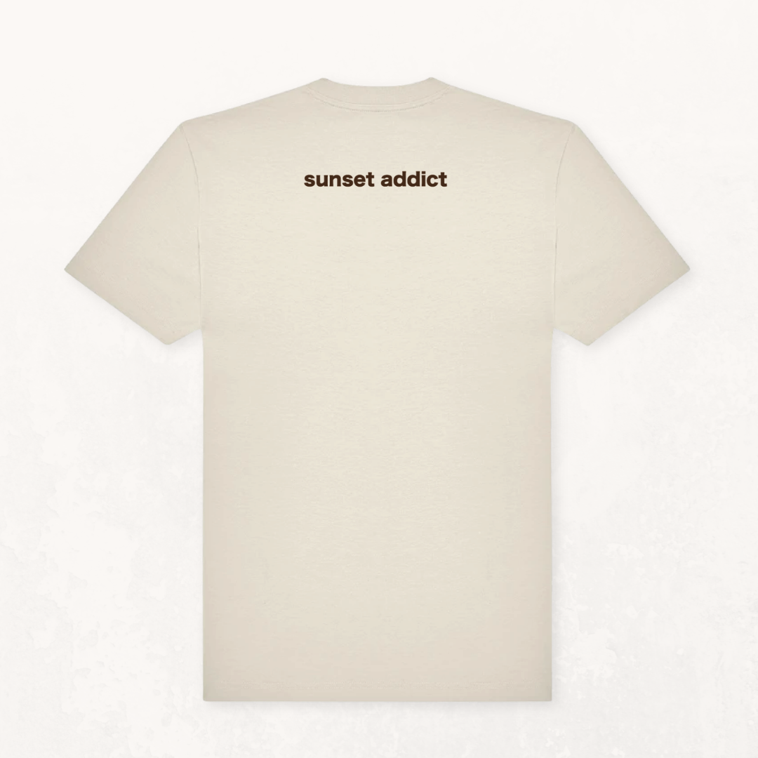 Presenta el nuevo restyling del logo de La Más Bonita, creado para esta edición especial de merch. En la espalda aparece “sunset addict”, una declaración para quienes saben que el día termina mejor mirando el mar.