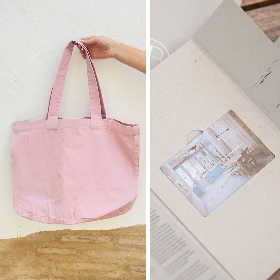 The Desayuno Bonito gift set combines a La Más Bonita tote bag with a €20 gift card to enjoy breakfast at the LMB Ruzafa and LMB Patacona locations